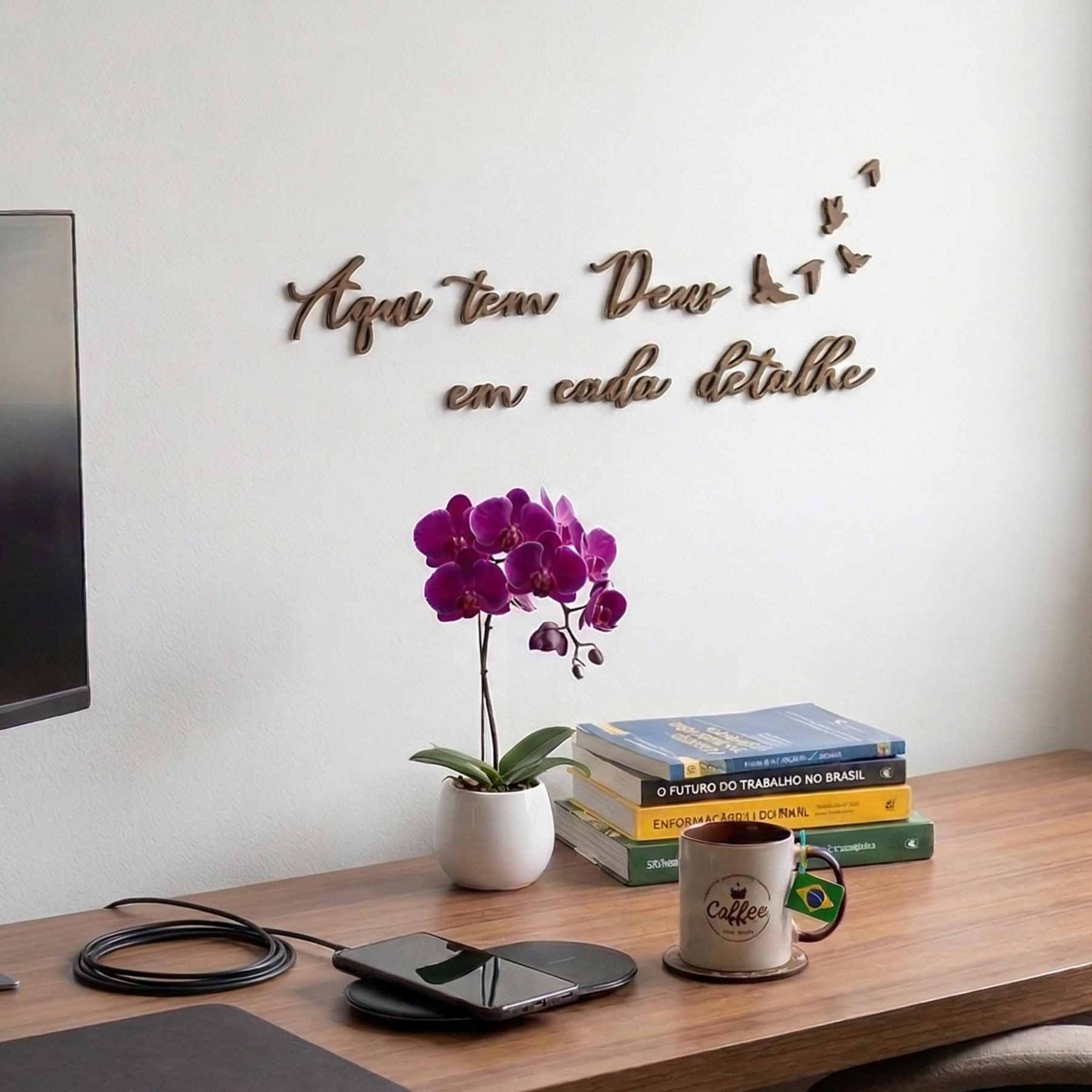 Sinta a presença divina com "Aqui Tem Deus Em Cada Detalhe" da Decoranza br. Decoração religiosa que eleva a espiritualidade e protege seu lar. Adquira já para inspiração diária.