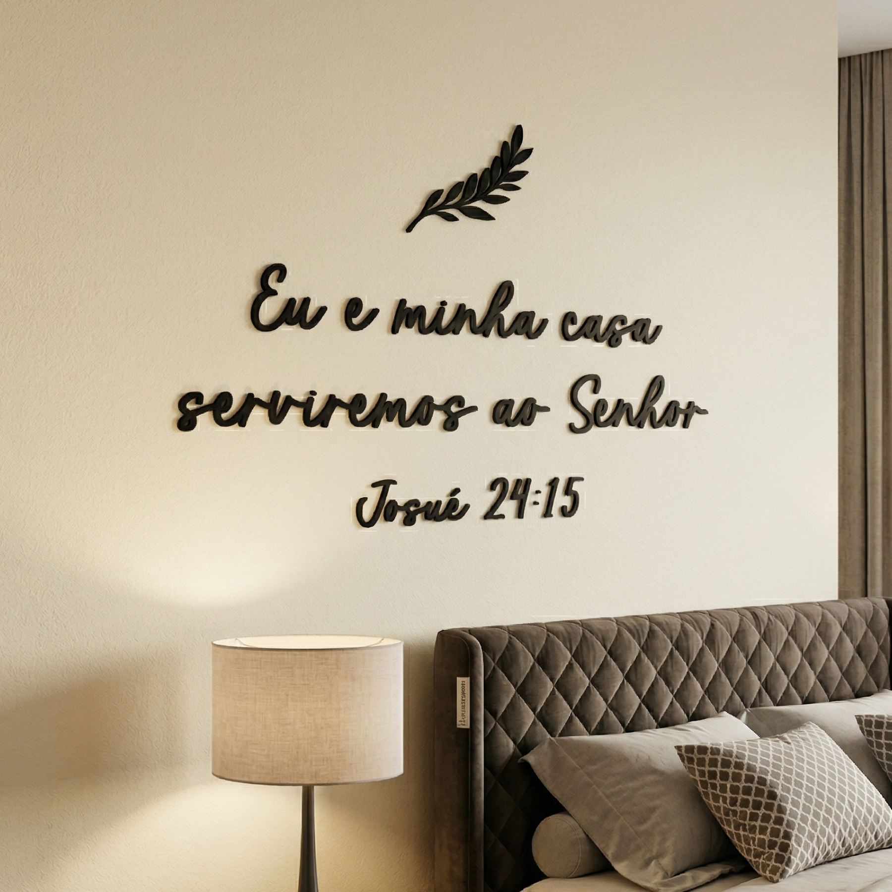 1x "Eu e minha casa serviremos ao Senhor – Josué 24:15" – Frase Lettering de Parede