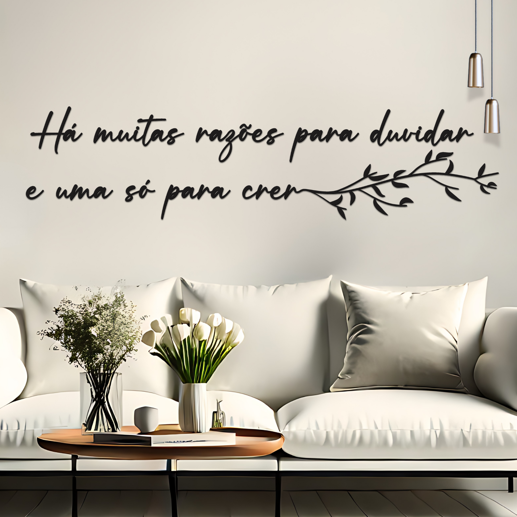 1x "Há muitas razões para duvidar e uma só para crer." – Frase Lettering de Parede