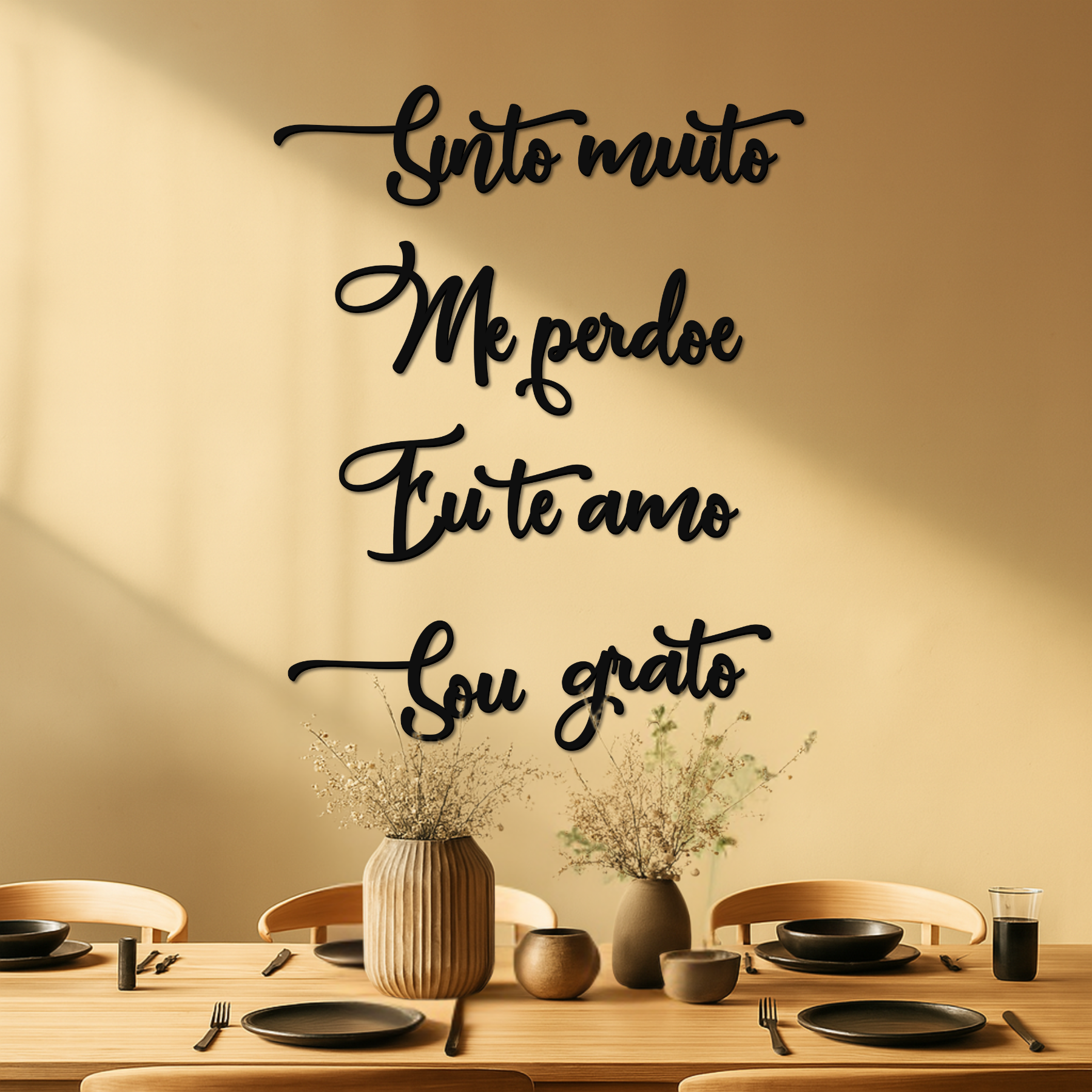 O lettering “Ho’oponopono” traz para o seu ambiente a força das quatro frases de cura havaianas: Sinto muito, Me perdoe, Eu te amo, Sou grato. Mais do que uma escultura decorativa, é um convite ao perdão, ao amor próprio e à harmonia espiritual. Produzido em MDF de alta qualidade, seu design elegante valoriza paredes de salas, quartos ou espaços de meditação, preenchendo o lar com energia positiva e significado profundo.