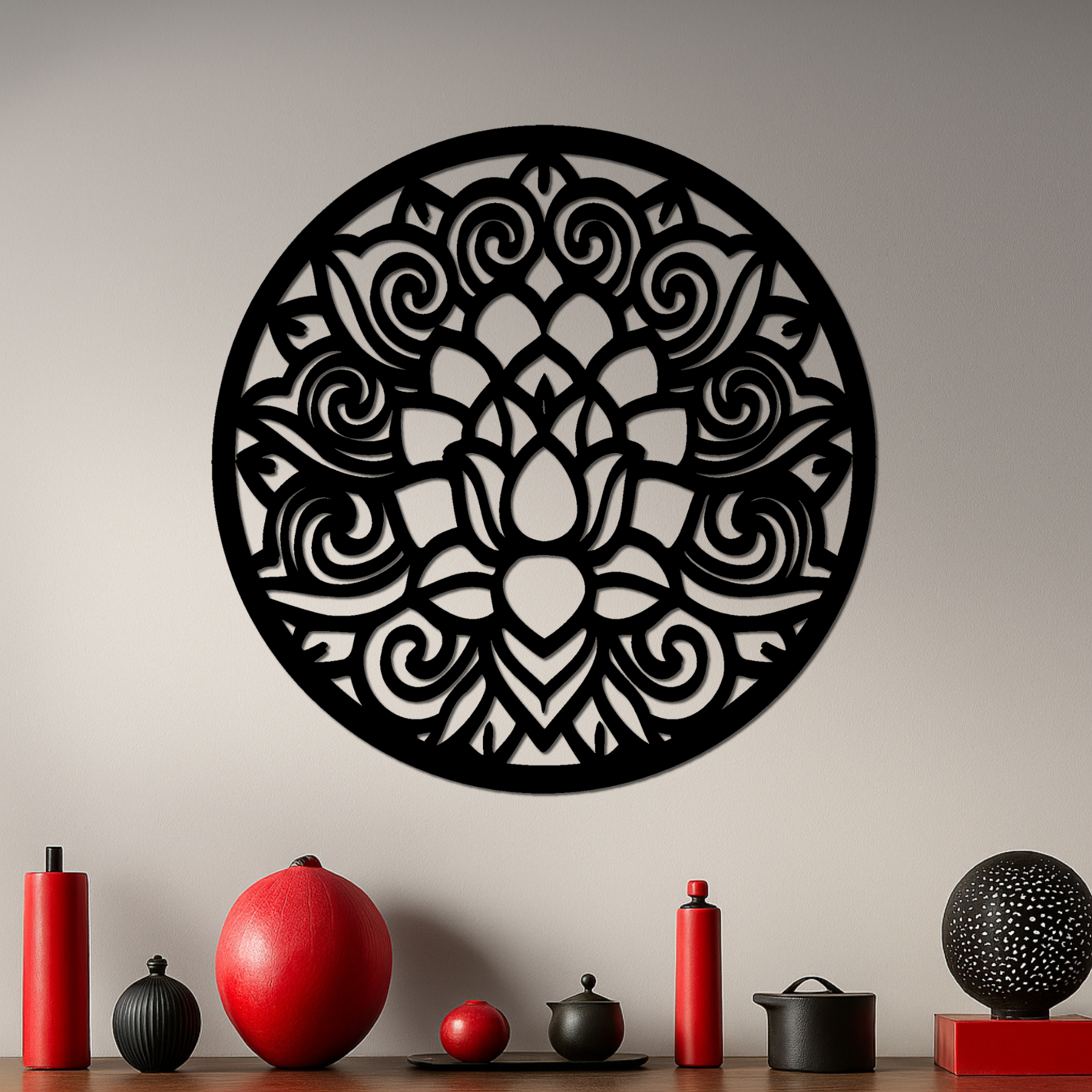 Inspirada na serenidade das mandalas e na pureza da flor de lótus, a escultura “Mandala Flor Zen” transforma qualquer ambiente em um refúgio de equilíbrio e beleza. Suas formas circulares e orgânicas, recortadas com precisão em MDF, evocam fluidez e contemplação, convidando ao silêncio interior. A peça é um símbolo de renovação e paz — perfeita para quem busca mais significado na decoração. Instale-a em salas, halls ou ambientes de meditação e deixe que sua casa respire harmonia.