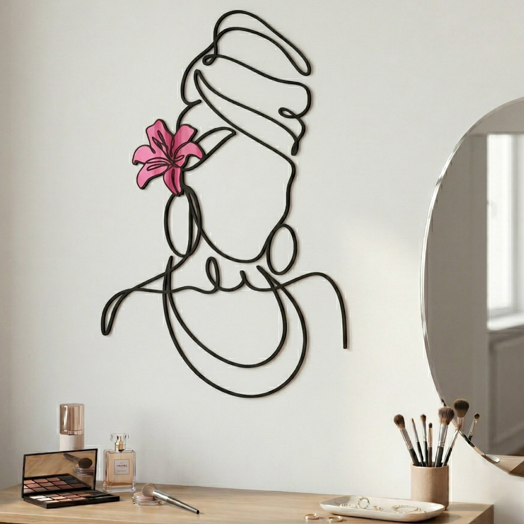 1x "Mulher com Lírio" - Peça Decorativa com Acrílico em MDF Premium
