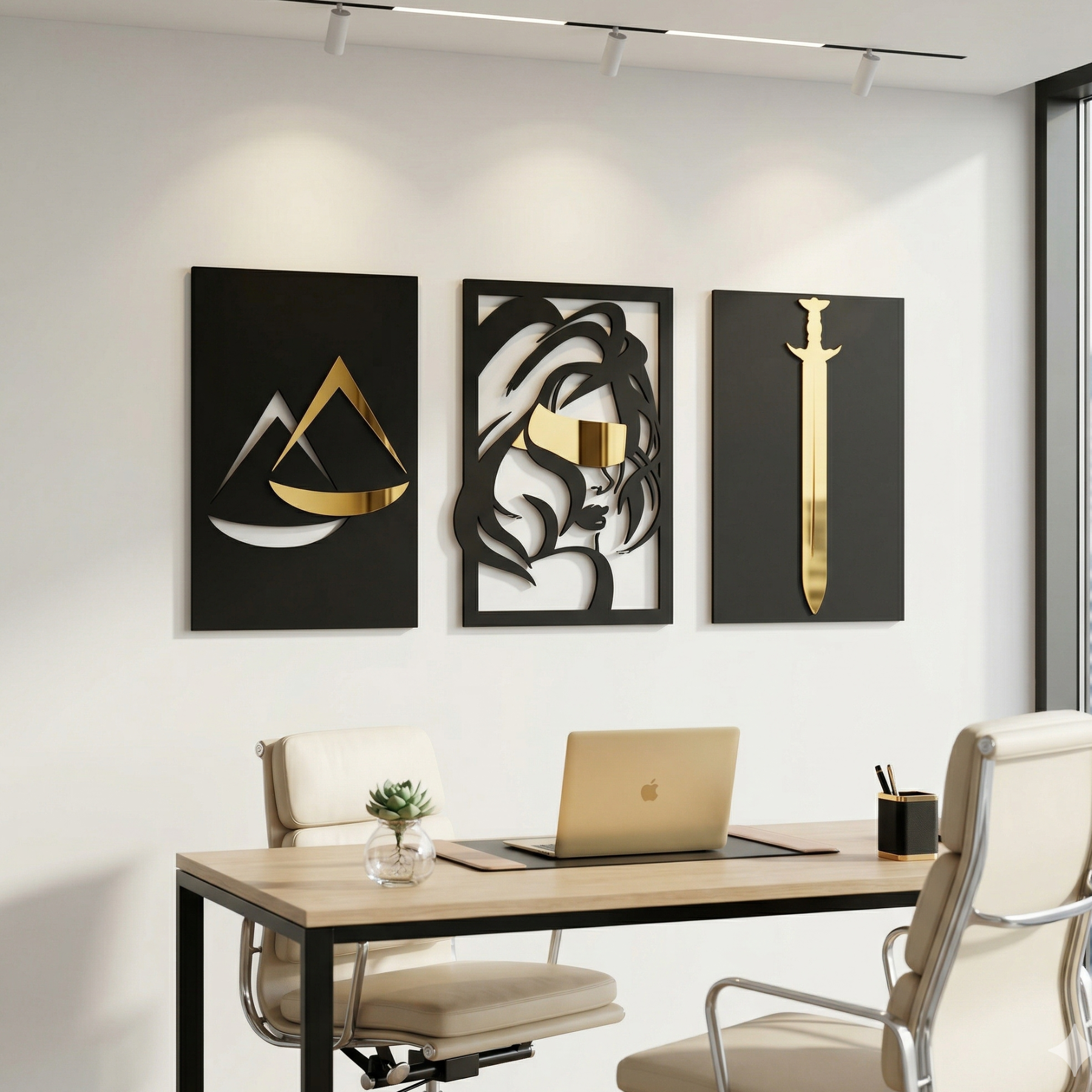 “Trio Deusa da Justiça” - Peça Decorativa com Acrílico em MDF Premium