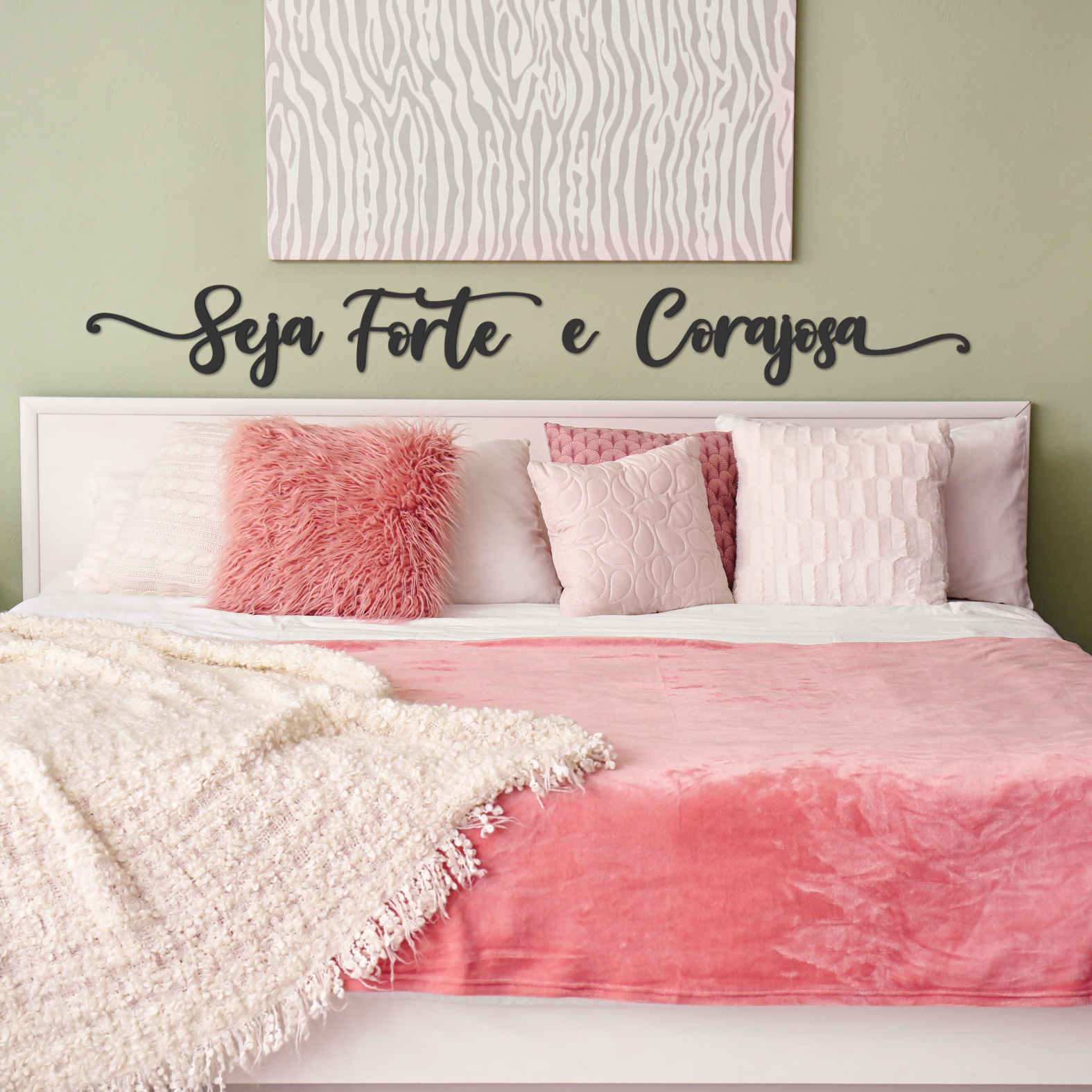 1x "Seja Forte e Corajosa" – Frase Lettering de Parede