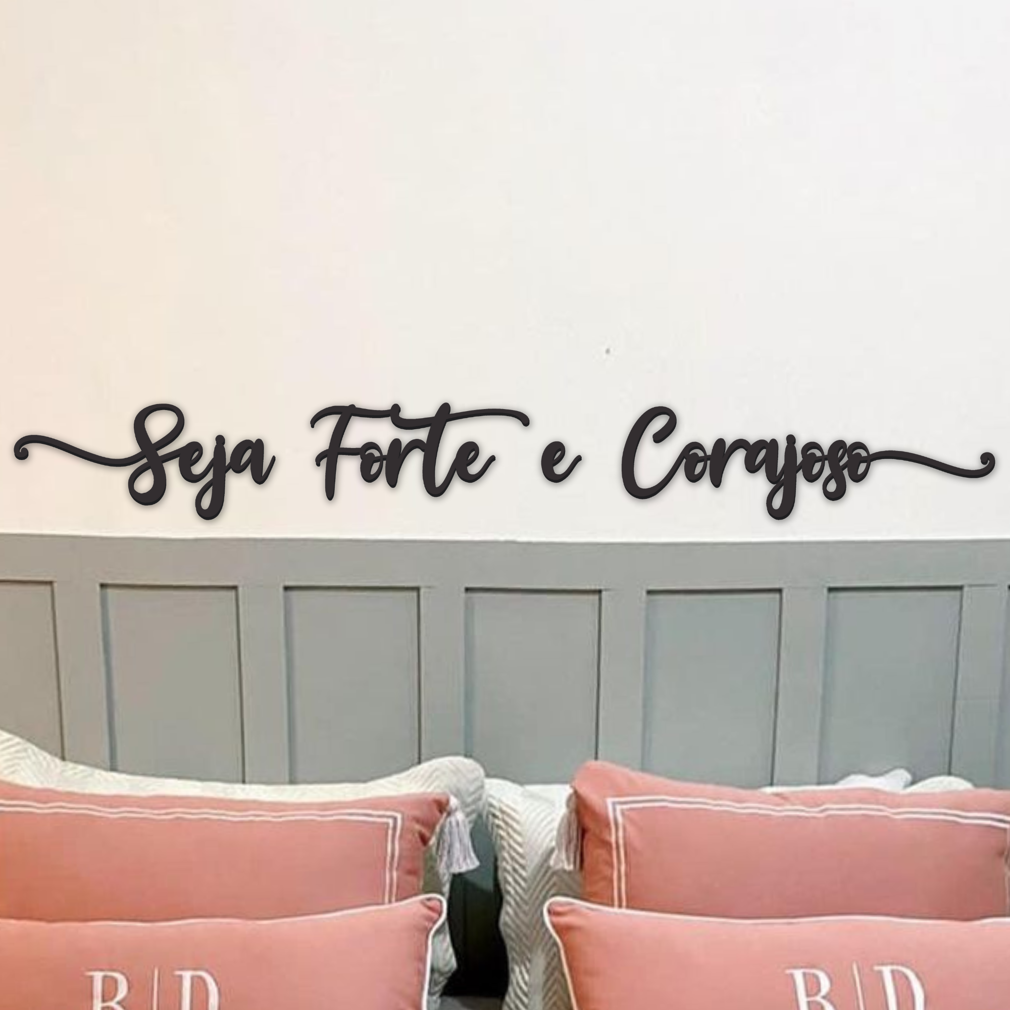 "Seja Forte e Corajoso" - Frase de Parede em MDF Premium