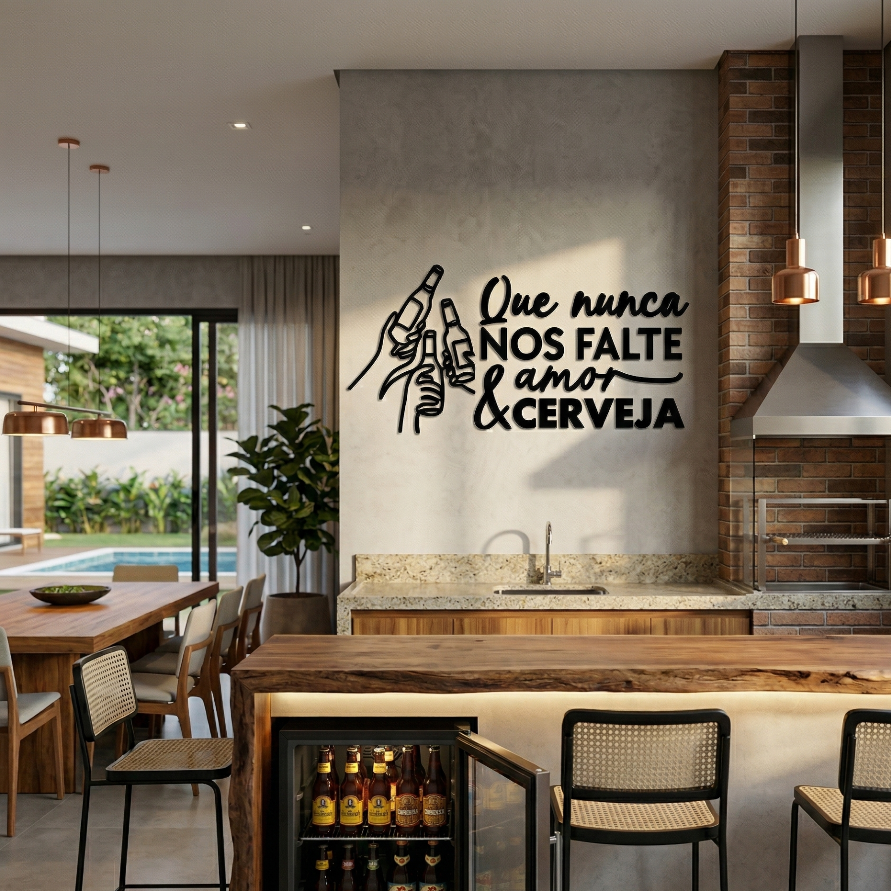 A escultura “Que nunca nos falte amor & cerveja” é perfeita para celebrar os bons momentos da vida. O design em MDF, com taças erguidas em brinde, transmite alegria, união e descontração, tornando qualquer ambiente mais leve e acolhedor. Ideal para espaços gourmet, bares caseiros ou salas de convivência, esta peça é um convite para compartilhar risadas, histórias e sentimentos. Afinal, amor e cerveja sempre combinam com celebração.