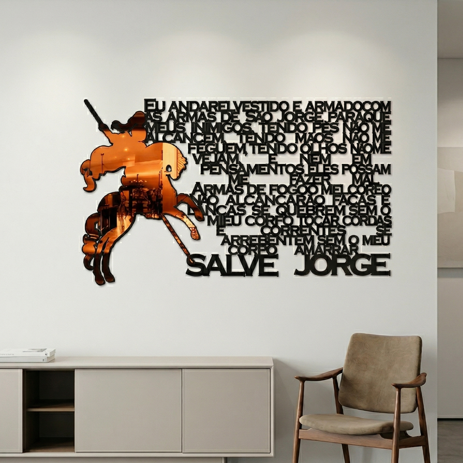 Assa Escultura da Decoranza br é uma expressão de devoção e beleza. Esta obra apresenta a imagem de São Jorge em acrílico, cercada pela oração protetora. Com detalhes precisos e acabamento refinado, esta peça é um símbolo de fé e proteção, ideal para decorar e inspirar.