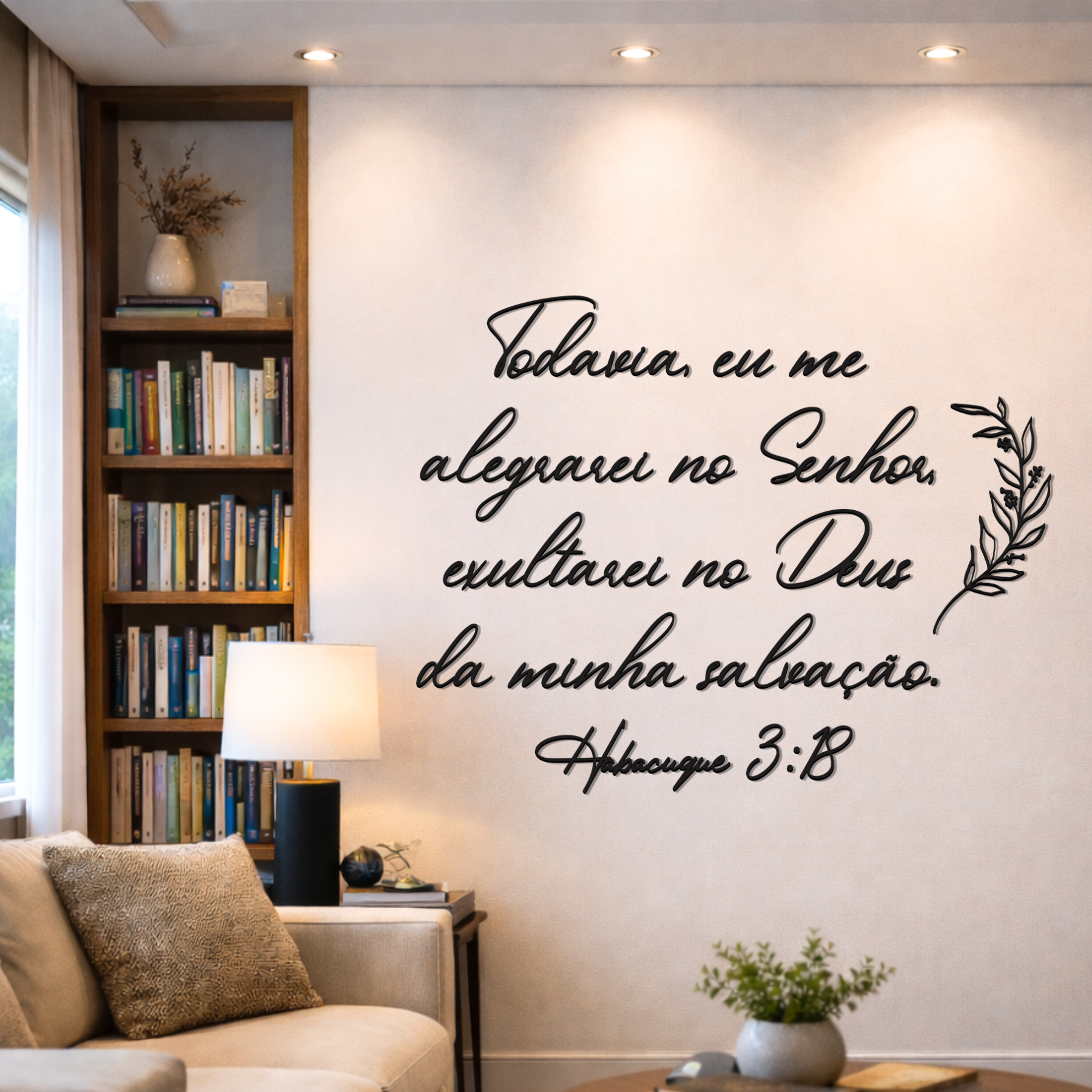 Traga mais fé e inspiração para o seu lar com este lettering exclusivo de Habacuque 3:18. Feito em MDF de alta qualidade, esta peça eleva a decoração e reforça sua conexão espiritual, tornando cada ambiente um refúgio de paz. Seja para sua casa ou presente especial, esta obra une design sofisticado e significado profundo. A delicadeza dos traços e a mensagem poderosa fazem dela um destaque na decoração. Transforme sua parede com propósito e beleza hoje mesmo!