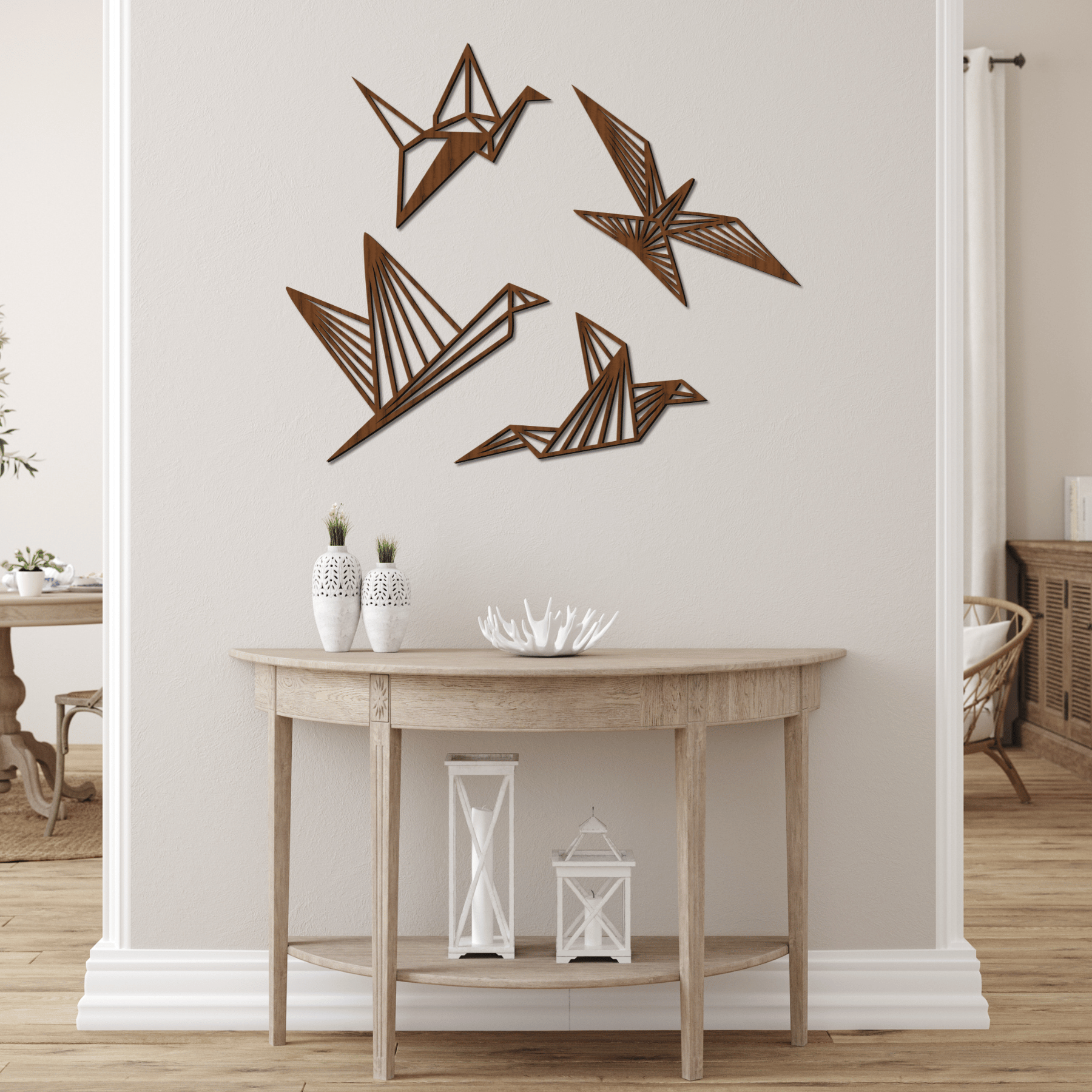 A Peça Decorativa "Voar do Origami" apresenta uma silhueta delicada de uma mulher cujas linhas se transformam em borboletas, simbolizando beleza e transformação. Esculpida em MDF Premium, esta obra transmite uma sensação de leveza e liberdade, adicionando um toque poético e elegante à sua decoração.